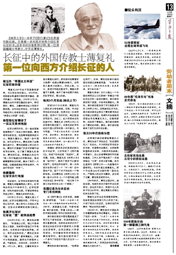 长征中的外国传教士薄复礼 第一位向西方介绍长征的人