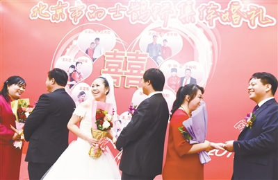 这是一辆开往幸福婚姻的出租车。昨天上午,由北京市交通运输工会、北京交通广播主办,北京市职工服务中心、首都职工志愿服务队协办的北京市的士鹊桥集体婚礼在北京市职工服务中心举办。7对新人搭乘盛满爱意的出租车,驶向婚姻的彼岸。婚礼现场,首都职工志愿尹浩文化艺术服务队特意为7对新人设计 了《一生缘》剪纸作品。该幅作品上部为形象“一”字,下部为形象“缘”字,寓意夫妻二人在未来的生活中勤劳、甜蜜、幸福。