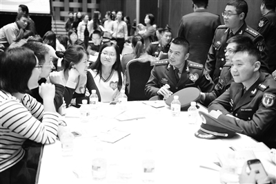 近日,“爱从军营起航”大型军地交友联谊活动在国家会议中心举办,本市驻京部队、卫生、教育、公安系统、企事业单位的千名军地青年到场寻找缘分,男女比例为4:6,年龄普遍在30岁左右。一位军人表示,部队管理严格,接触女性的机会较少。这次一下子能看见这么多姑娘,希望能收获美好的爱情。