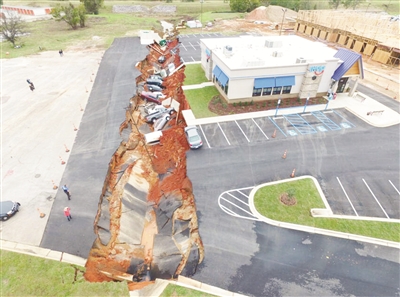 当地时间11月7日晚,美国,密西西比州第六大城市默里迪恩(Meridian)一家餐厅外停车场上出现了一个600英尺(约183米)长的巨型天坑,餐厅顾客目瞪口呆看着他们的汽车被天坑吞噬。