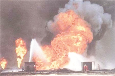 1991年2月,入侵科威特的伊拉克军队点燃了727口油井,造成大火。伊拉克军队被打败后,大火仍然燃烧。各国组成了灭火队到科威特灭火。直到11月6日上午,在科威特城以南的巴尔甘油田第118号油井大火被扑灭,至此科威特油井大火全被扑灭。西方专家曾估计,这场世界上罕见的油井大火少则两三年,多则五年才能被扑灭。