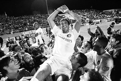 本报讯 昨天是皇马球迷以及劳尔球迷心碎的一天,38岁的传奇球星劳尔踢完了职业生涯的最后一场比赛,他效力的纽约宇宙3∶2击败渥太华复仇者,赢得了北美职业联盟的冠军。劳尔用一个冠军,给自己的传奇生涯,划上了一个句号。