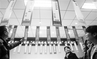 昨天,“践行价值观灯谜进万家”系列活动在西城区大栅栏街道举行。来自附近社区的百余名灯谜爱好者积极参与,辖区内居民在猜灯谜这种轻松的形式中接受了社会主义和谐价值观的教育。本报记者 孙妍 摄影报道
