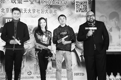 本报讯(记者 高铭)都市情感剧《“北上广”不相信眼泪》在北京卫视已播出过半,近日,剧中演员陶慧、侯京健、黄超、大庆随着北京电视台影视剧中心举办的“欢聚一堂”系列进社区活动走进北京航空航天大学,与社区居民和北航的大学生们一起,共话戏里戏外的有趣故事。