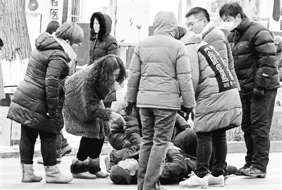 11月22日下午2点10分,长春市南湖中街,一位老人突然晕倒在路旁。从远处走来一个男子,上前看了看,不知该怎么相助,就转身想拦辆车,将老人送到医院。两分钟过去了,没有拦到车。又过了3分钟,晕倒的老人旁边陆续聚了好多人,大家焦急地商量着,看看如何来救助老人,有人说把老人扶起来、有人说用老人手机给家人打电话、有人还拨打了“110”和“120”求救……(11月23日《新文化报》)