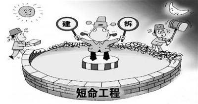 近些年来,“短命工程”屡见不鲜,一些工程花巨资兴建,几年甚至更短时间就被拆除。专家认为,“短命工程”的现象反映出当前城市缺乏成熟谨慎的城建规划,缺乏前瞻性,应该统筹规划、合理布局,要立足长远,而不是短期行为,避免重复建设和浪费。