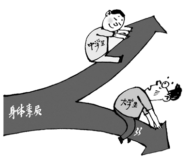 在不久前发布的《中国青少年体育发展报告(2015)》中提到,多项身体素质检测显示,大学生身体素质不如中学生。早在2014年7月28日,教育部在介绍第十二届全国学生运动会筹备及学校体育改革发展有关情况时就表示,大学生体质健康下滑趋势仍没有得到遏制。体育课程不被重视、缺乏体育锻炼,一系列的原因让大学生体质变差。