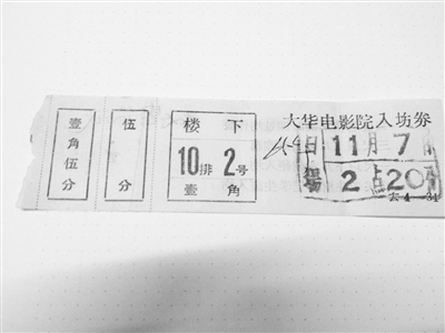 最近,我在整理父亲旧物时,发现一张“大华电影院入场券”。