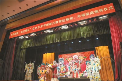 本报讯(记者 白莹)11月19日,由永外街道主办的“永定情怀”文化艺术节落幕。京剧、舞蹈、歌唱等10个节目精彩亮相。值得注意的是,街道举办的首届“我身边的楷模”和“幸福家庭”评选名单,也在文化节上揭晓。最终从地区200余人和85户家庭中,产生10名地区楷模和10户幸福家庭。本报记者 孙妍/摄