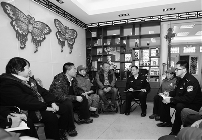 西城公安分局“听民意、暖民心、保平安、促和谐”大宣传大走访活动启动。分局民警将从即日起至2016年春节前,进单位、进社区、进家庭面对面向群众征求意见和建议。目前,已走访1万余户,收集群众关于执法服务类、治安秩序类、安全防范类等意见建议1200余件。本报记者 陈艺 摄影报道