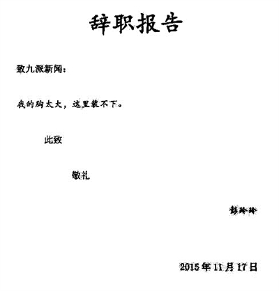 前不久,一封来自河南某中学女教师的辞职信“世界这么大,我想去看看”在网上爆红后,不少“奇葩”辞职理由的辞职信在媒体中不断爆出。最近几天,来自某网络媒体和某报社的两名女员工,分别以“我的胸太大,这里装不下”、“宣传谁做都可以,我就不奉陪了”作为辞职的理由,再次引爆公众的关注。
