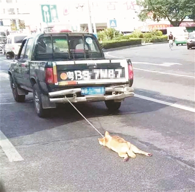 近日,深圳网友在东莞阳光网发了几张照片,照片中一辆小货车在后面拖着一只狗,那只狗从开始还是会自己跑的,到最后被拖到不会动了。很多网友看到都纷纷留言,觉得货车司机太残忍。