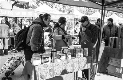 12月13日,河北省承德隆化地方名优特新产品走进丰台区北大地社区。此次活动由中国村社发展促进会民营经济专业委员会联合丰台彤心社工事务所与隆化县政府共同举办,让京城百姓体验到更方便、更快捷、更实惠的家门口购物新模式。本报记者 邱勇 摄影报道