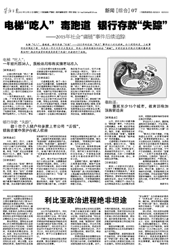 电梯“吃人” 毒跑道 银行存款“失踪”