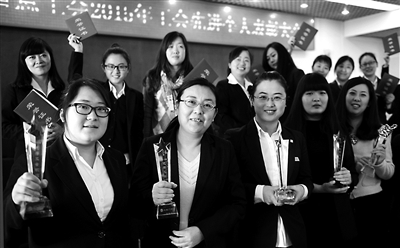 建国门街道总工会上周召开2015年工会先进个人表彰会,对“优秀工会干部”、“工会积极分子”、“职工素质教育优秀学员”进行表彰。会后,获奖干部职工举起奖杯,相互鼓励“来年更努力”。