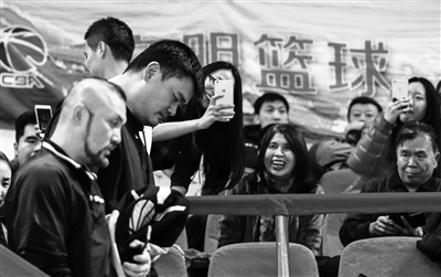 这场实力悬殊的比赛,真正的看点是姚明来到了赛场。赛前记者席上几位同行就在议论姚明的到来,姚明此行北京主要是为了参加一位好友的婚礼,到奥体并不是什么特殊的安排。不过,姚明的到来还是让现场的球迷激动不已,当现场DJ高呼“欢迎姚明”时,为京辽两队加油本立场不同的球迷,换成了一致的口号,口号只有两个字——姚明。姚明上到主席台落座的时候,很多摄影记者“抛弃”了比赛,把镜头瞄准了姚明,甚至有一位记者抢步上了主席台近距离拍摄,他很快被安保请了回去,不过据说这位仁兄还是成功地拍了几张姚明的照片。