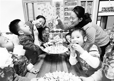 新年将至,为了更好地开展传统文化进校园活动,24日,海淀区恩济里幼儿园开展“新年民俗主题活动”,孩子们与老师、家长代表一起包汤圆、包饺子,在学习中华传统民俗文化的同时,锻炼了动手能力。