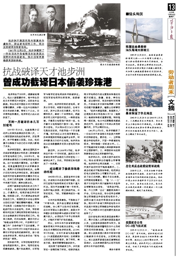 抗战破译天才池步洲 曾成功截译日本偷袭珍珠港
