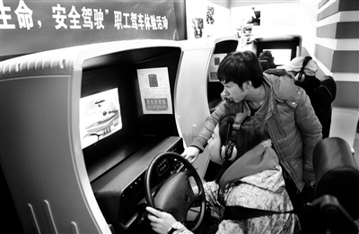 昨天,东直门街道总工会组织辖区非公企业工会主席和职工体验安全驾驶。工会负责人表示,两节期间,不少职工走亲访友免不了聚会喝酒,此时安全驾驶意识尤为重要。通过这项活动,希望职工熟悉驾驶技巧,树立安全出行的意识。本报记者 边磊 万玉藻 摄影报道