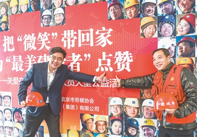 原来,劳动午报社、北京市劳动模范协会、北京工会传媒协会联合在这举行“把微笑带回家,为最美建设者点赞——关爱在京外来务工人员”大型公益活动。该活动得到了中建一局、中建二局、中铁六局、中铁十六局、中铁二十二局、北京城建集团、北京住总集团、北京建工集团等单位的大力支持。