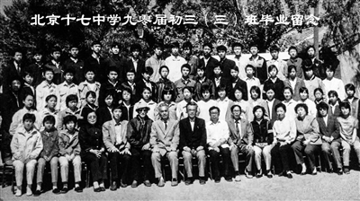 这是一张六寸的黑白照片,纸页泛黄了,是青葱岁月里的青葱留影。同学们的脸庞稚气未脱,班主任李京华老师,那时是40岁不到的美女。和她并排坐在我们中间的是“数学魔圣”李希老师、“重力加速度圣斗士”小刘老师和“美音范读”赵德才老师。背景中一棵大槐树,当年就在教学楼的甬道旁边,每天蝉和鸟儿随着我们的读书声在绿荫里鸣唱。