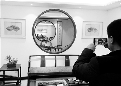 此次书画展一改传统专业展厅布展的模式,将书画作品直接搬进精品家具馆,通过家具摆放、一窗一廊搭配、建筑氛围的营造和特殊灯光效果,创设出家居书房、客厅、玄关等实景,把书画作品应用于实际生活中,与生活场景相搭配、融合,体现书画与社会公众的亲和力,立体呈现书画作品的文化气场和形态,完整展现书画的艺术表现功能和实用性,创造出一种情境书画展的新模式,给观众一种和谐自然的艺术享受。
