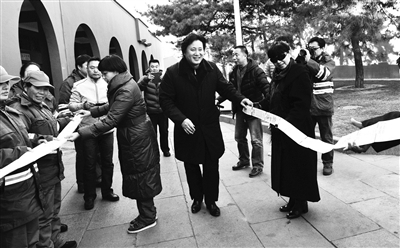 “辞旧岁三羊开泰、迎新春六猴送安”。拿着出自书法大家之手的春联,北京威克冶金有限责任公司的职工们爱不释手。“难得有机会见到这么多著名书法家,我一定得借此机会跟他们学习学习。”一名职工书画爱好者在现场显得十分忙碌,他一边等待书法家们书写“春联”和“福”字,一边向书法家讨教书法技巧……