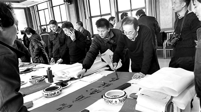 “这是职工书法家亲自书写的春联,春节期间贴在门口多有面子。”日前,北京市总工会“送文化、送温暖、迎新春”主题活动走进密云。北京市职工书画协会带领8位著名职工书画家,来到北京威克冶金有限责任公司,为那里的职工现场书写“春联”、“福”字。
