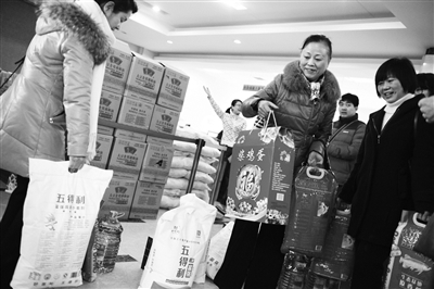 工会服务站大厅内,277箱紫鸡蛋整齐地码放,红色包装看起来颇为喜气。牛奶、食用油、富强粉、大米在另一边堆得一人多高。“过年了,咱们得惦记这些困难职工。”卢沟桥乡工会主席苟光茂说。