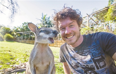 2015年12月22日,爱尔兰小伙能与各种动物和谐相处,亲密交流,甚至自拍合影。在他的这些自拍中,袋鼠、短尾矮袋鼠、骆驼以及海狮等等动物无不满面“笑容”,还有些更是带上了圣诞帽。