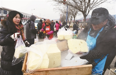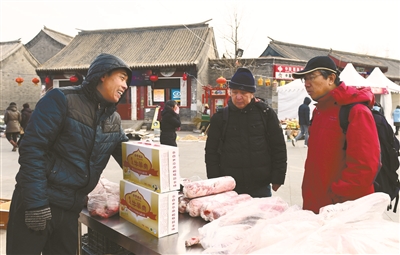 1月30日,家住石景山的杜女士,召集了几个好友,专门到延庆区永宁古城赶集购置年货。她在集市上买到了很久没吃到的黑枣儿,永宁出名的豆腐和火勺儿。购买的窗花是村民自己亲手剪的,年画以守卫长城的历史人物为素材,原汁原味。最让她开心的是,集市上的摊主厚道,容易砍价,不像城里市场上的商贩那么“精明”。