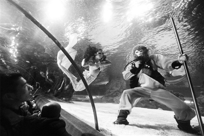 昨天,一只活泼可爱的“金猴”来到北京工体富国海底世界,为游客们重现了西游记中大闹水晶宫的精彩一幕。一只八面玲珑的“金猴”出现在人们眼前,蹦蹦跳跳地带领大家去领略海底世界的神秘与奇幻。人们惊喜地发现,富国海底世界最大的亮点正在长达120米的水下观赏隧道上演,刚刚还在领路的“金猴”不知何时已经潜入海底,上下腾挪、挥舞着金箍棒为人们重现着昔日闹龙宫的场景,甚至连传说中的“美人鱼”也不禁驻足。