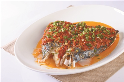 翠绿的香葱衬着红火的剁椒,色泽红亮,汁香撩人!超大的鱼头在剁椒的掩映下愈发的迷人多姿,让人忍不住大开吃戒。举箸入口间,鱼肉的鲜嫩、剁椒的微辣、豉汁的甜香通通在唇齿间交融,幻化曼妙的小滋味瞬间便将挑剔的味蕾俘获。