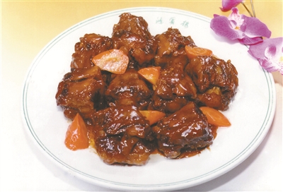 鸿宾楼的镇店之菜是红烧牛尾。红烧牛尾选用育肥牛的牛尾的中段。红烧牛尾讲究色泽明靓,咸鲜醇厚,软烂可口。难以企及的精到之处在于,用筷子一拨,其肉便脱骨而下,没有十多年经验的师傅是烹制不到如此火候的。