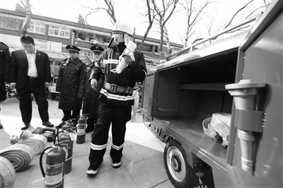 走进东城区龙潭街道幸福社区的小院,三辆大红色的消防电动车整齐码放,小院西侧的办公室,是社区微型消防站的办公室。春节前夕,龙潭街道24小时防消一体化社区微型消防站揭牌,从那时起,8名保安人员就要24小时轮流在社区巡逻,预防火情。