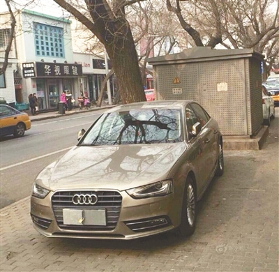 首先可以肯定的是,这辆已经算不上豪车的奥迪车所停的位置,没有施画停车线,不是停车位,当属违章停车无疑,违反了《道路交通安全法》第61条第1款“在禁止停放车辆的地方停放车辆的”的规定。对于非现场违章停车处罚,法律规定:如果驾驶人不在场,可以贴罚单,让司机接受违停处罚。