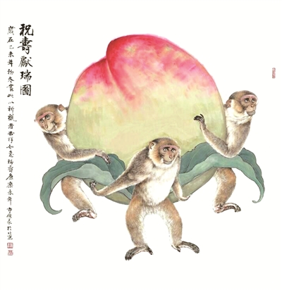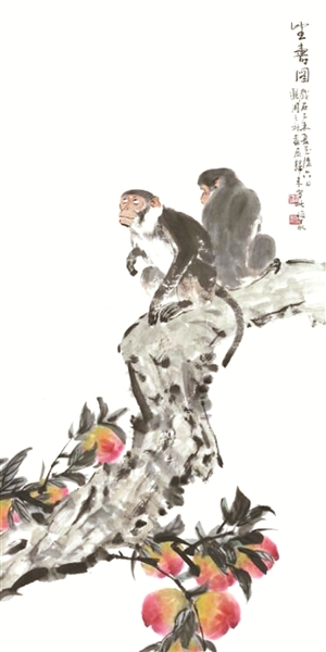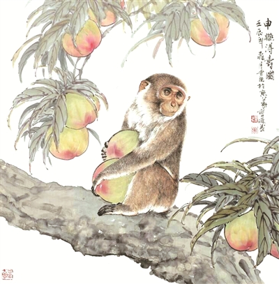 曹俊义告诉记者说,像李白的“两岸猿声啼不住,轻舟已过万重山”,就借用猿猴凄厉的叫声,表达清冷孤寂的环境氛围。古人创作有关猴的作品时,常常会把猴跟桃、山、水、月夜、松鼠等组合在一起,表达不同的意境。