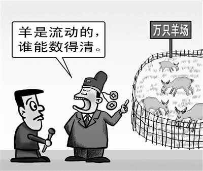 省、市两级政府对养羊户都有一定的补贴,记者在调查陕西靖边县几个养羊场时发现,对外宣称拥有万只的养羊场,却只有几百只羊。面对记者质疑,靖边县畜牧局局长田文涛说:羊是流动的,谁能数得清。(2月21日《华商报》)□赵顺清