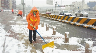 为了保证街道整洁,一到下雨下雪天,别人都往家里赶,兴华大街路段的环卫工们却坚守在岗位上,疏通道路、清理垃圾,甚至都没有时间找个地方避一避。如今大兴4号线通车了,道路宽敞了,保洁的面积也增加了好几倍,环卫工的工作更加繁重辛苦。