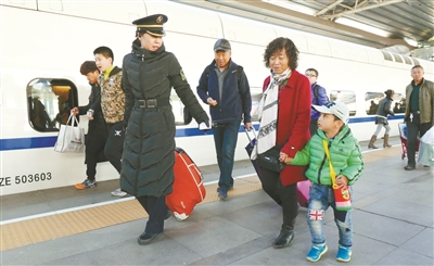 这时,车长杨光又一次带领乘警、机械师对整个车厢进行安全巡视检查。参加工作20年,她有16年春节是在列车上度过。“每年春节,看着旅客们安全到达车站与亲人团聚回家过年,我们的工作就很有成就感,很欣慰。”杨光说。