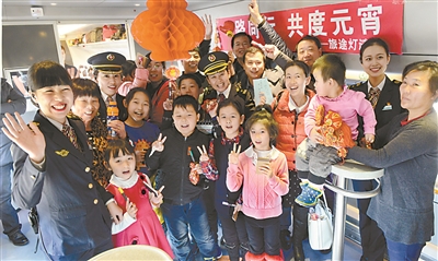 不一会儿,车厢里就喧闹起来,30多名乘客带着孩子你一言我一语开始了猜灯谜闹元宵。车厢里处处是欢声笑语……