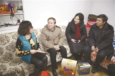 2月初,困难单亲女职工张师傅的家里挤满了人,让这个不大的屋子一下子热闹起来。区政协党组书记、主席邵鹏和坐在沙发上的张师傅一家唠起了家常,并为其送上了慰问品和慰问金。区领导率先垂范,拉开了东城区总工会“两节”送温暖的序幕。区总工会党组书记、主席王彦带领着全区各级工会干部,挨家逐户进行走访慰问,把凝聚着党和政府的爱心送到困难职工的家中、手中、心中。