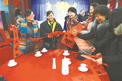 活动中,全区劳模共同观看了该区职工自编自导自演的精彩的文艺节目。欣赏了彩蛋画、中国结两种非物质文化遗产传承人的现场制作工艺。演出过程中,该区职工书画摄影展获奖职工和五位书法家挥毫泼墨,共同为劳模写下了一幅幅新春“福”字和春联。职工书法家郭宝庆老师题写了“劳动伟大,劳模光荣”的书法作品赠送给全区劳模。最后,在欢快的乐曲声中,区领导亲手将“福”字和春联赠送给现场的每一位劳模,并与他们亲切交谈。