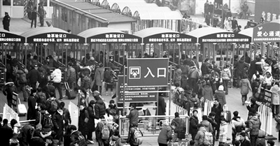 一趟列车载有旅客2000至3000人,春运高峰时,四五趟列车同时到达,北京西站有四个出站口,这一万余人瞬时就从这四个站口涌出。