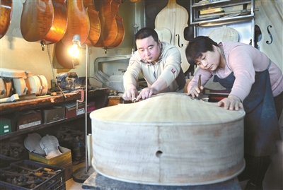 1996年,爱人殷志方也来到这家提琴厂工作,从此夫妻俩上班各干各的工种,下班回家就是研究作琴手艺。一晃七年过去了,宋保存制作小提琴的手艺达到了一定的水准。