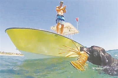 美国男子亚历克斯舒尔茨的宠物犬“莱拉”接到主人的命令,在主人指示方向之后,迅速潜入水中,目标锁定一只大龙虾,一下子就将龙虾用嘴捕获,并游出水面将战利品奉献给了主人。舒尔茨说,在训练“莱拉”时,一定要让它感受到这是一个愉快的游戏,并且不时要予以奖励。
