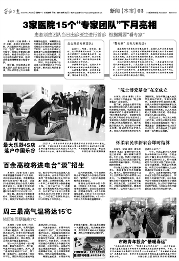 3家医院15个“专家团队”下月亮相