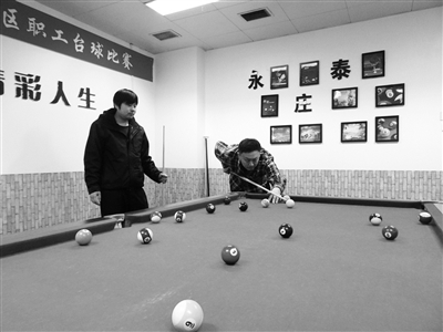 “好球!”乒乓球室传来一阵喝彩声,原来这是站区书记王炜和值班站长李隆,利用下班时间在切磋球技。在永泰庄站区,喜欢乒乓球、台球这两项运动的职工不少。在职工之家建设前,工会结合职工的兴趣爱好,通过征集职工的意见,专门开辟两个房间分别设立为乒乓球室和台球室,供职工放松休闲。