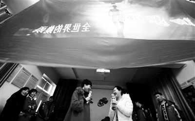 挂起网上买的幕布,打开投影仪,配上音响,开唱!昨天,公交377路车队工会组织女职工,启动了迎三八车队好声音职工卡拉OK大赛。活动中,女职工成为不折不扣的女主角,男职工打光的打光、放音乐的放音乐、搬椅子的搬椅子,全程为女职工服务。