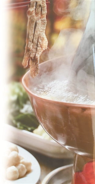 “比如,鲜肉。夹起一片鲜肉下到锅中,筷子要搅动,这时肉才会打开。肉变色后即可食用。”李凤新说,“肉煮的太久营养成份会流失太多。冻肉在涮的过程中,要记住“缓”这个字。夹起一片冻羊肉卷的时候,放到锅中后两到三秒要迅速提起,缓一缓,然后再放入锅中涮三秒,重复三遍,即可。这样保持口感,还保留足够的营养成份。”